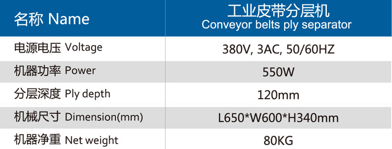 皮帶開齒配套使用,用於分離多層熱塑性傳動帶,可調節分層機上壓輪及分層機切片,比如PVC PU傳送帶分層,厚度範圍為0.8~20mm,分層厚度調節旋鈕,腳踏開關控製,操作簡單快捷。